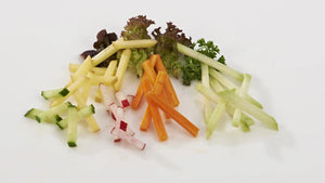 Slide-in plate with blades of 7 mm thickness to cut your fruit or vegetables into strips or cubes (brunoise) of 7 mm.